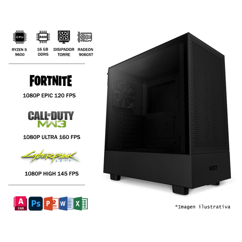 PROCESADOR RYZEN 5 9600, TARJETA DE VIDEO RADEON 9060XT