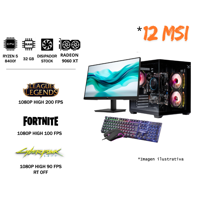 PROCESADOR AMD RYZEN 5 8400F CON DISIPADOR STOCK Y RADEON 9060