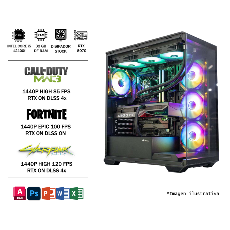 PROCESADOR INTEL CORE I5 12400F CON TARJETA DE VIDEO RTX 5070 Y DISIPADOR STOCK