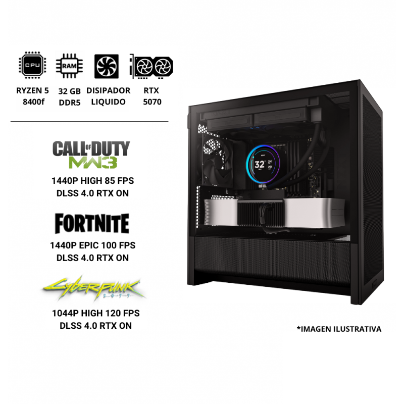 PROCESADOR AMD RYZEN 8400F CON TARJETA DE VIDEO RTX 5070 Y DISIPADOR STOCK