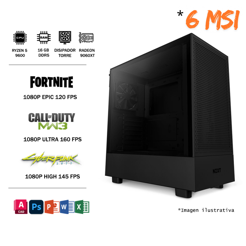 PROCESADOR RYZEN 5 9600, TARJETA DE VIDEO RADEON 9060XT