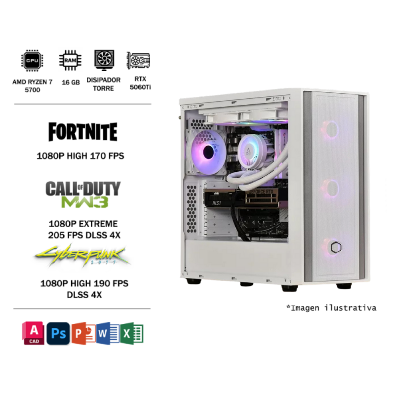 PROCESADOR AMD RYZEN 7 5700, TARJETA DE VIDEO RTX 4060TI Y DISIPADOR STOCK