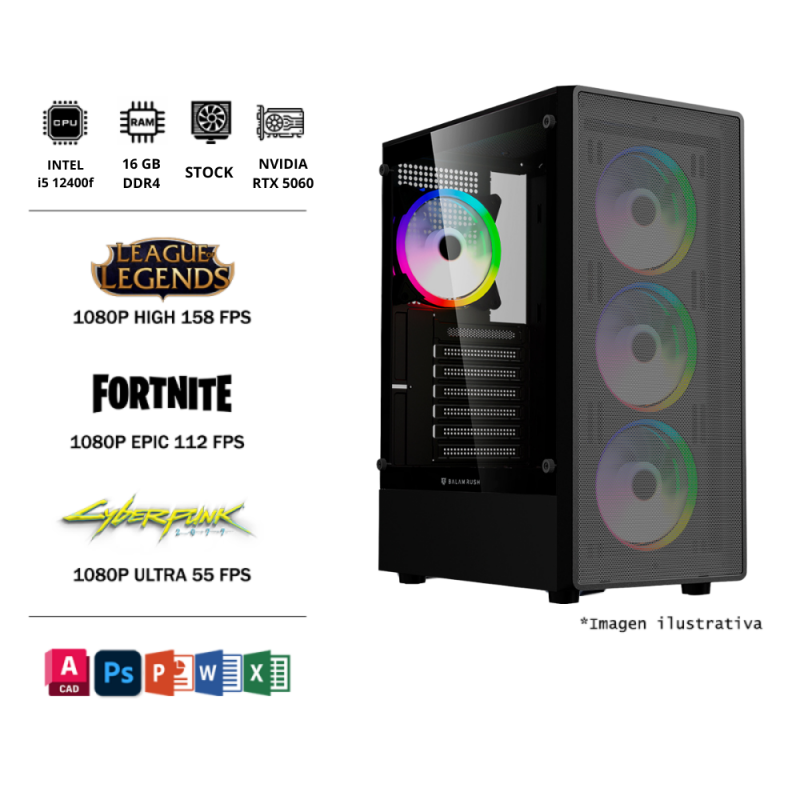 PROCESADOR INTEL CORE I5 12400F CON TARJETA DE VIDEO RTX 4060 Y DISIPADOR STOCK