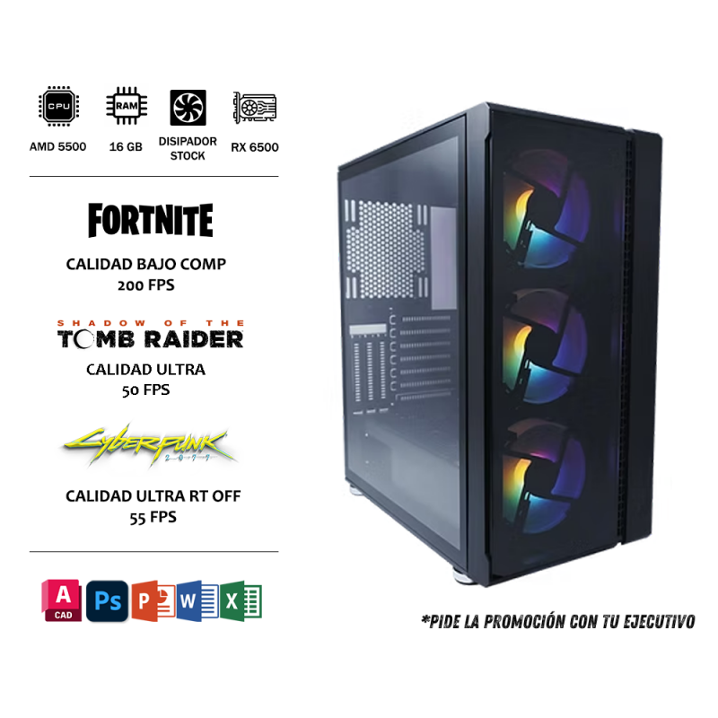 PROCESADOR AMD RYZEN 5500 CON TARJETA DE VIDEO RADEON 6500 Y DISIPADOR STOCK
