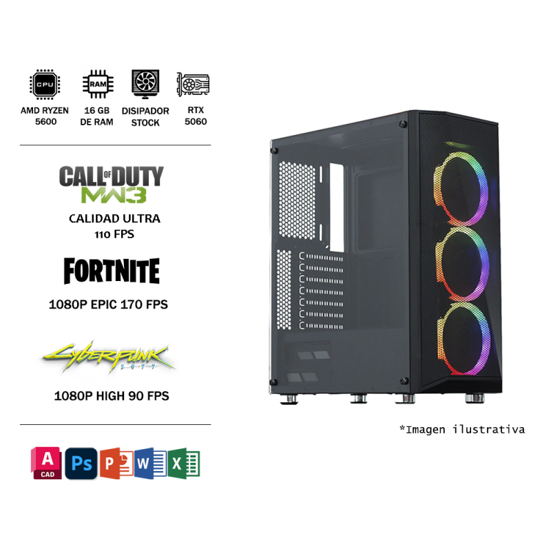 PROCESADOR AMD RYZEN 5600 CON TARJETA DE VIDEO NVIDIA RTX 5060 Y DISIPADOR STOCK